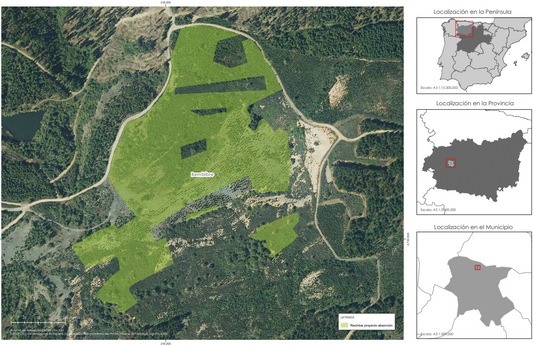 EUSPA BEMBI8 Reforestation of 9 ha old deserted cole mine with two species of pine trees near Leon, Spain